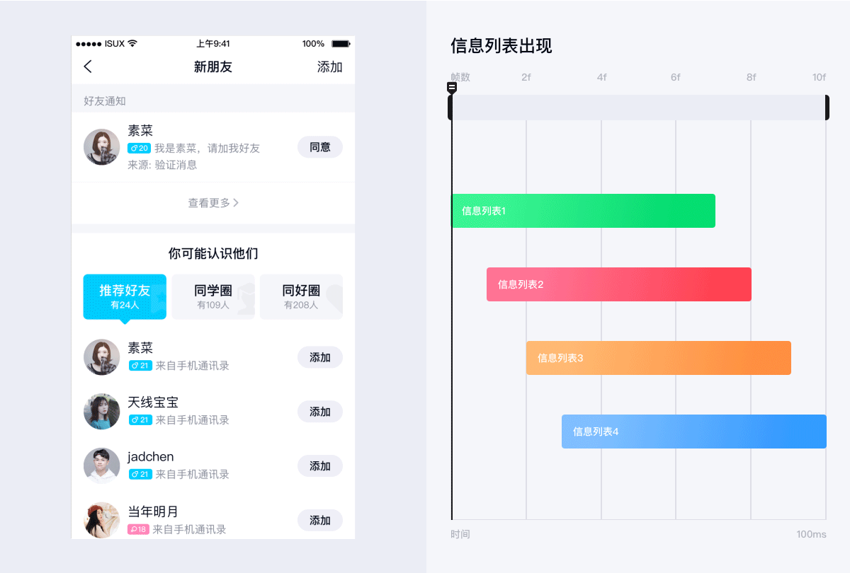 在合理的动画顺序基础上,连贯的动效,能给用户更为优雅流畅的视觉体验。所以对多个元素的动画设计时,不可所有元素同时运动,也不可多个元素完全错开运动(会显得呆板低效),适当的错帧和动画时间交叠,能使动画更流畅和高效。